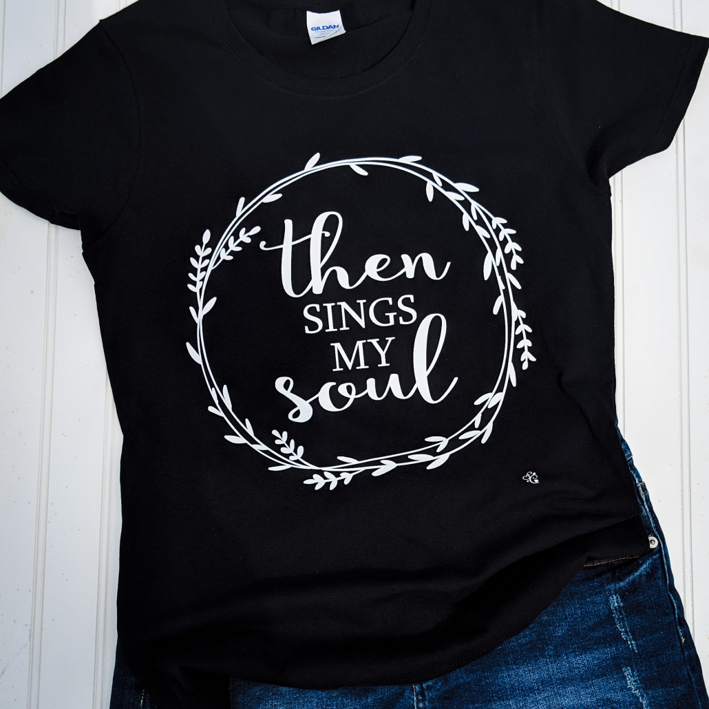 Then Sings My Soul…a line from one of my favorite hymns. I find that when I wear this shirt I am singing the hymn in my mind; in fact, I am sitting here singing it as I write this description.